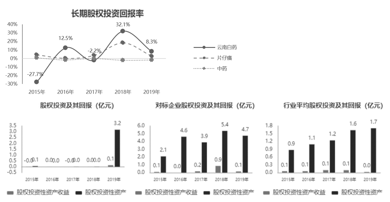 图8-26展示了云南白药和片仔癀、行业平均在长期股权投资回报率的表现。