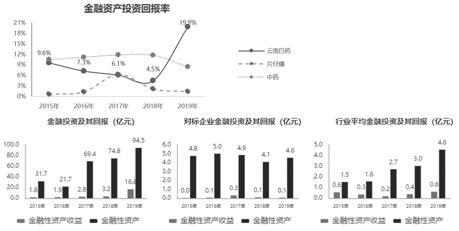 图8-27 云南白药、片仔癀、中药行业的金融资产投资回报率