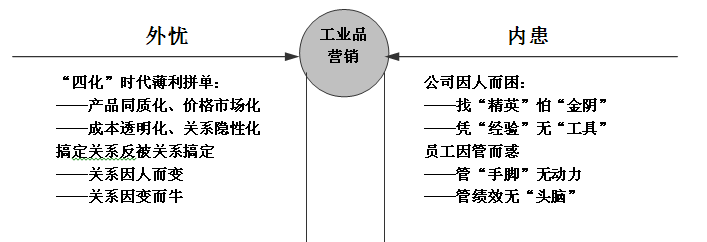 工业品营销四面楚歌,工业企业营销管理外忧内患,如图1-4所示。