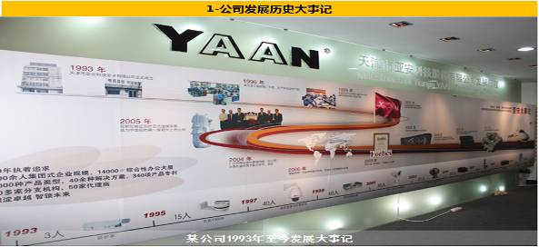 将公司历年发展大事记通过整理资料目视化张贴出来,让所有员工了解、融入公司文化。