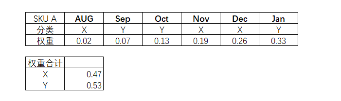 以下SKU,反复在XY类型中交替,那么可以根据近6个月情况和所占比重,选择定义它为Y类型。