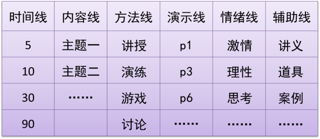 对于初级的培训师来说,一定要亲自制作和设计一下《培训行为配置表》,这样你才能保证自己对课程有完全的把控能力,让自己在与学员互动中有条不紊地把握节奏。