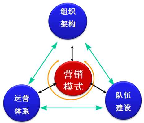 营销模式源于三个要素:队伍建设、组织架构、运营体系(如图11-1所示)。其中,队伍建设相当于企业的硬件,如果企业是一部手机,零件质量的好坏是基础,队伍就是企业的零件。怎样配置这些零件,决定了组合后的效果,同样的电线、灯泡,并联设计和串联设计的效果是截然不同的。将人才设置在哪个层级?发挥哪些职能?安排什么样的人才?这些都是组织架构需要解决的问题。最后,为了匹配所选定的组织架构,需要设定相应的运营体系。如果是集权型的组织,必须匹配长流程、高规范的运营体系;分权型组织,则要匹配短流程、高应变能力的运营体系。