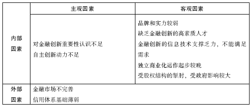 表3-2 中小银行金融创新乏力的主要因素