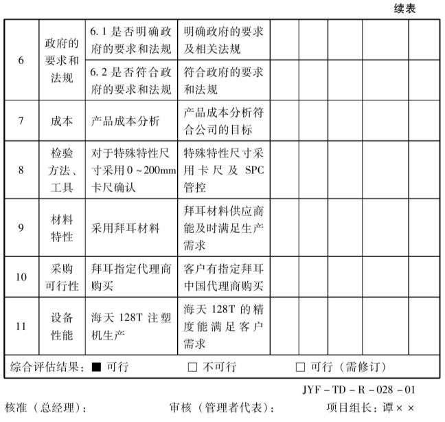 顾客主要包括使用者、代理商、经销、下游组装工厂等,在立项时一定要了解清楚客户的要求是什么。如果没有设计责任,则可以直接把客户的样品需求单当作客户呼声,因为上面有明确的功能性能要求、法律法规要求、交样要求。如果有设计责任,就必须进行市场调查,搜集相似产品成功的经验和失败的教训,以及兄弟厂商常见的异常等。如空调风扇项目加水困难、噪音大的问题等,就要纳入APQP的输入。
