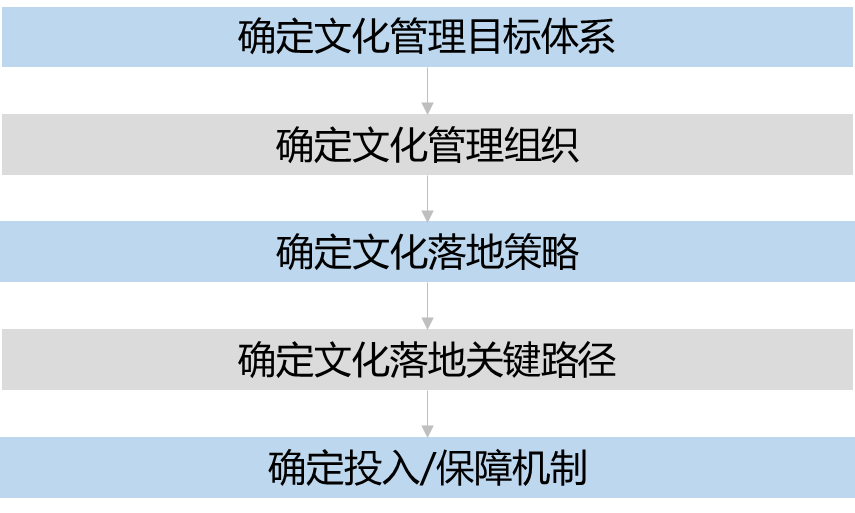 为了使文化落地规划更加科学、理性,结合在企业中的实战经验,笔者总结了落地规划的五个步骤: