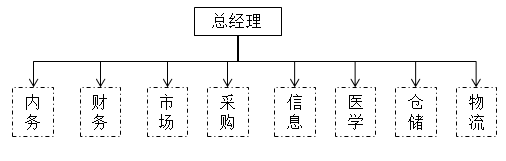注:上述医药商业企业直线制组织事业图是相对全面的架构,很多医药商业企业开始可能就几个人,但各自担任不同的职位、负责不同的业务,一旦有重要事件发生,就会集中力量处理重大事件。所以,有的医药商业企业开始不是以部门形式出现,而是以人的岗位出现,之后因为业务增加,进化成组、进化成部门。