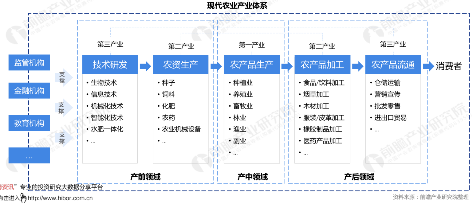 现代农牧业的产业体系大致可分为“产前领域”“产中领域”和“产后领域”三大领域。如图2-1所示。