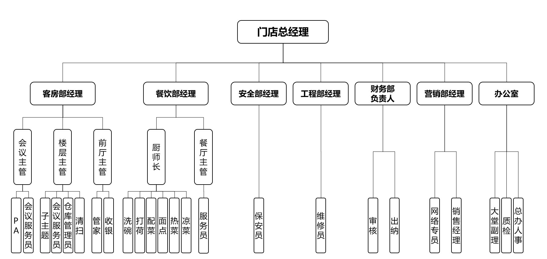 门店组织架构图如下图所示(各门店基于运营情况进行调整):