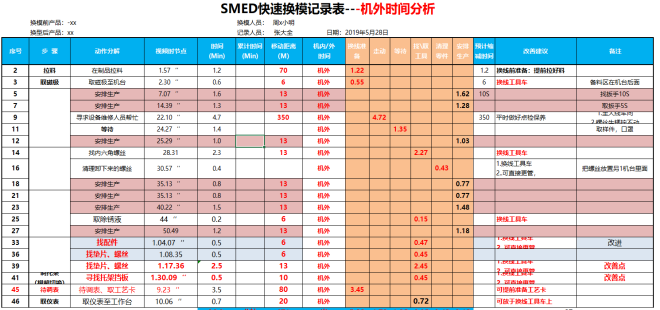 所以,我们以此改善为目标,原来设定的换模标准时间为2个小时,我们初步设定目标为1个小时,将费用降低一半。