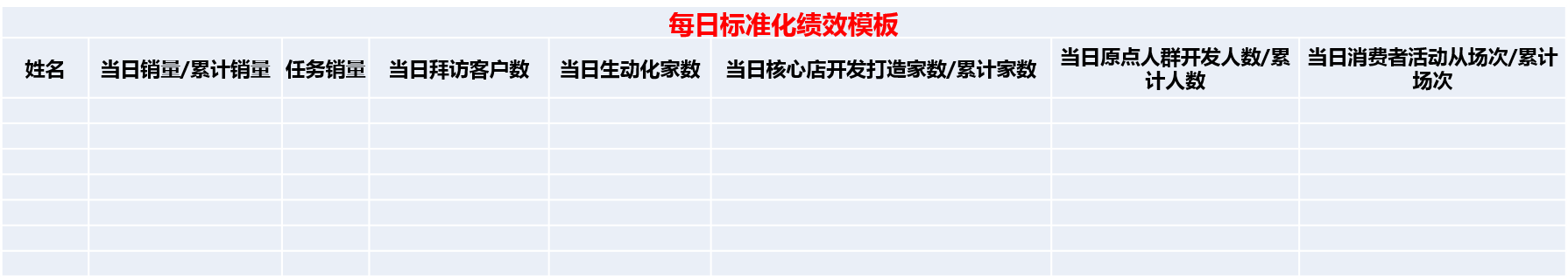 二是固定格式。固定好格式,每日让业务人员填写每日取得的绩效情况。
