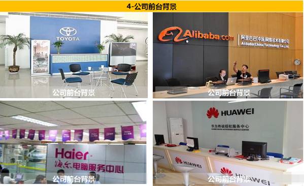 ②已经有前台背景墙的公司要标准化背景尺寸、颜色、字体、字号等,让每一个区域标准化。