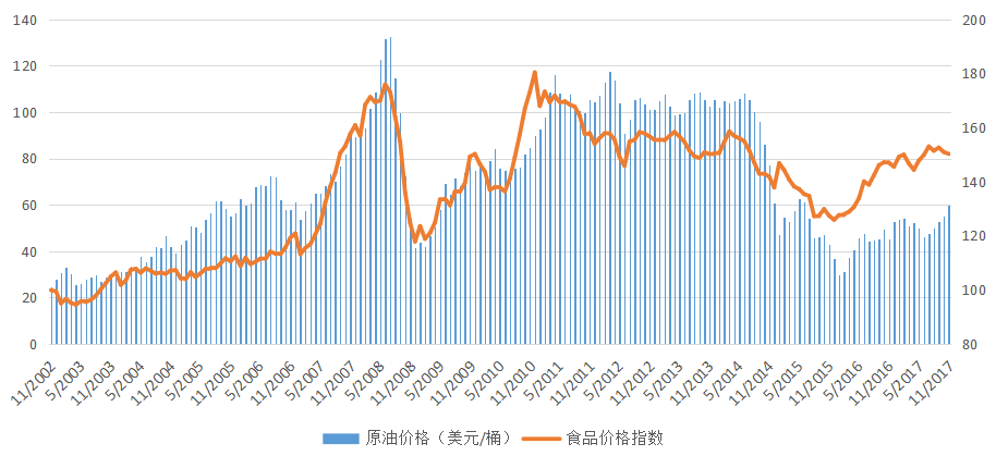 图10-1 石油价格与食品价格指数走势