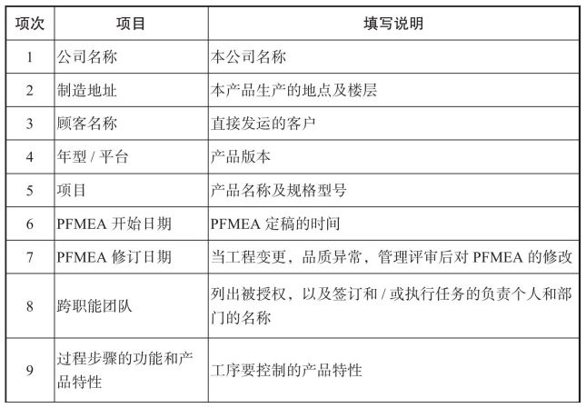 (4)PFMEA表格:由多功能小组分析后由工程负责整理,交文控发行至相关部门。