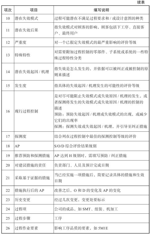 (1)PFMEA是Process Potential Failure Mode and Effects Analysis,称为潜在不良模式及