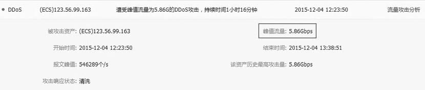 注意图7-29被框起来的数据:5.86Gbps,意思是最大流量是每秒5.86G,被攻击了1小时16分钟,就像平均每秒流量有4G,这一次攻击就要18240G,如果真的按2~4元/G的单价,一次就要被点掉几万元,哪个企业也承受不了。现在就明白了,为什么卖大闸蟹的企业每年都要花几十万来抵御DDOS攻击了吧?攻击者也应当是卖大闸蟹的,大家都需要在这极短暂的旺季把囤积的货物出手,把竞争对手的网站弄得打不开,卖不出去货,自然会让一些销量转到自己的网站上。