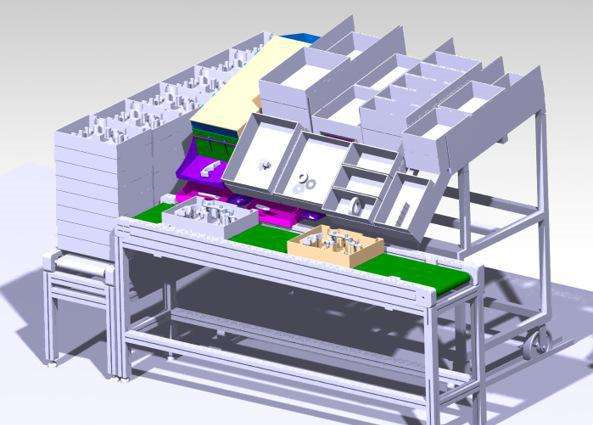 工位设计包含工位器具设计、物料的输入和输出设计、人员作业姿势设计等内容。以冲孔机的工位设计为例: