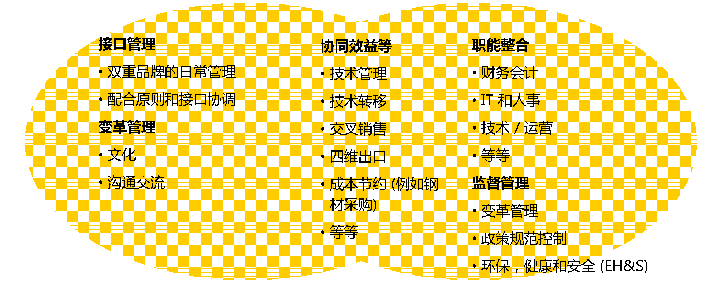 整个架构分为三大块“协同效应、职能整合、监管”。