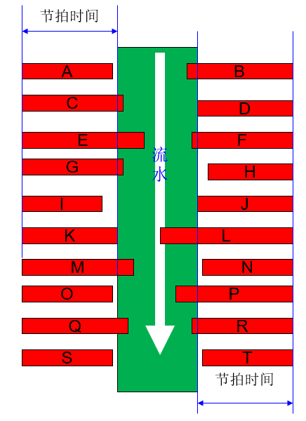 如图3-12所示,如果把流水线比作一条实际生活中流水的河,把每个时间柱子看成是阻碍在河中的端木,时间的长短代表端木的实际长度。