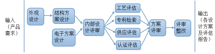 方案设计阶段主要投入的是人力资源,只要公司的工程师有富余时间就可以执行。到手板开发阶段,就开始要使用到开发费用了。所以,在这两个阶段中间,应设立这样一个评审点,用来决定公司是否要为这个项目投入资金。方案设计的总体流程如图3-1所示。