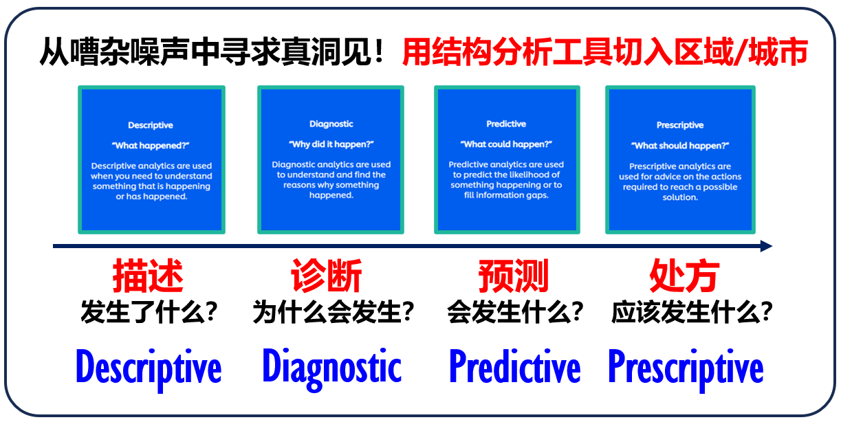 简单地说,“DDPP”工具就是四个步骤——先描述(Descriptive)、再诊断(Diagnostic)、然后预测(Predictive),最后开具处方(Prescriptive)。
