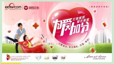 围绕“爱”的核心主题创意,采取“小投入,大传播”的传播策略,聚焦区域市场,进行电视广告、户外广告、手机广告、网络推广等媒介立体式传播,逐步渗透,让消费者产生共鸣并积极互动,演绎出一场场充满“爱”的温馨场面,“艾里体”表白方式也成为一时的网络热潮。
