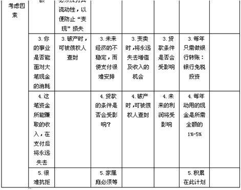 在分析出个人对现金和资金的需求之后,再将其与个人资产的“变现价值”做比较。若变现价值大于需求,当然可喜;若有不足,即为风险所在,此时即应寻找解决之道,以使自己的生活无后顾之忧和事业得以永续经营。