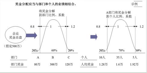(2)按照同样的思路,确定各单位、各部门员工的分配比例和系数,进行奖励二次分配。